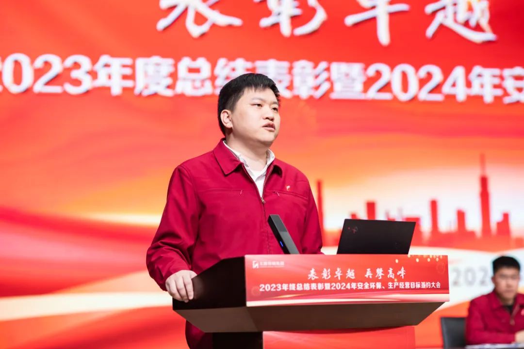 會(huì)議由集團(tuán)黨委委員、副總裁呂紀(jì)永主持,集團(tuán)黨委書記、董事長(zhǎng)季丙元、黨委副書記、總裁徐勝、黨委副書記、副總裁徐利、財(cái)務(wù)總監(jiān)周曉峰、黨委副書記朱永坤、黨委委員、工會(huì)主席袁燕、各子公司領(lǐng)導(dǎo)、集團(tuán)公司職能部門負(fù)責(zé)人、全體安全員、車間主任、銷售人員、科室相關(guān)人員及受表彰的各類先進(jìn)代表共500余人出席會(huì)議。