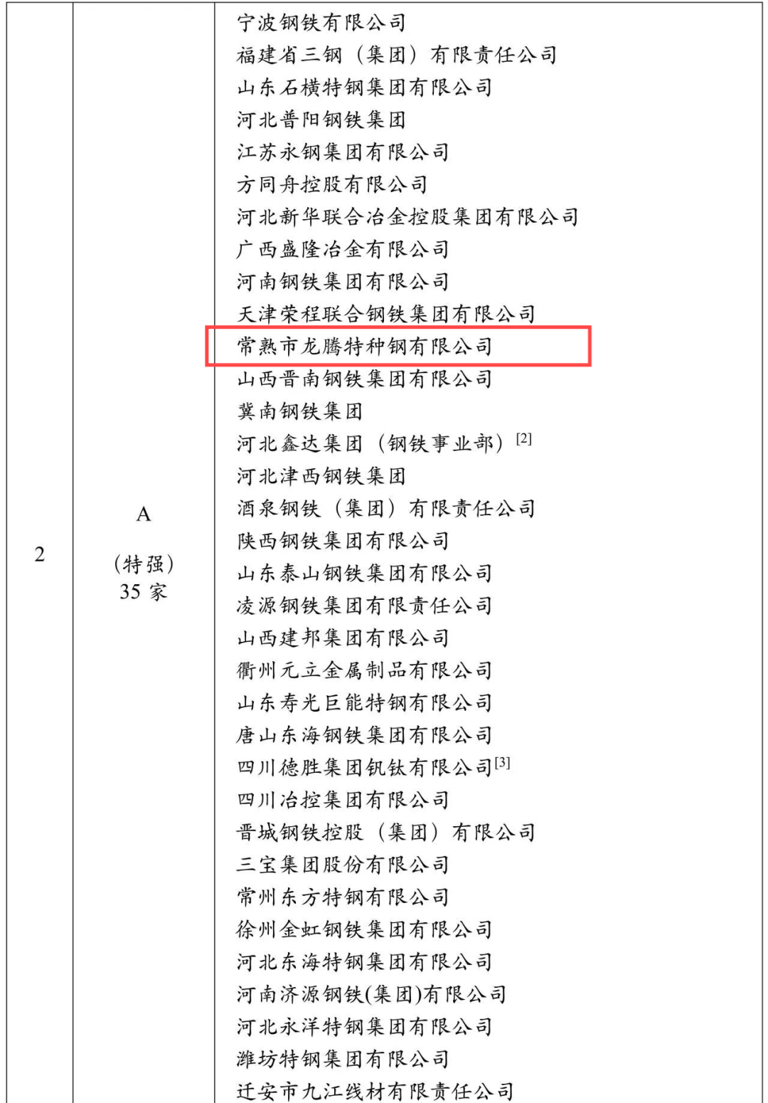 龍騰特鋼被評(píng)為A(特強(qiáng))級(jí)企業(yè)。